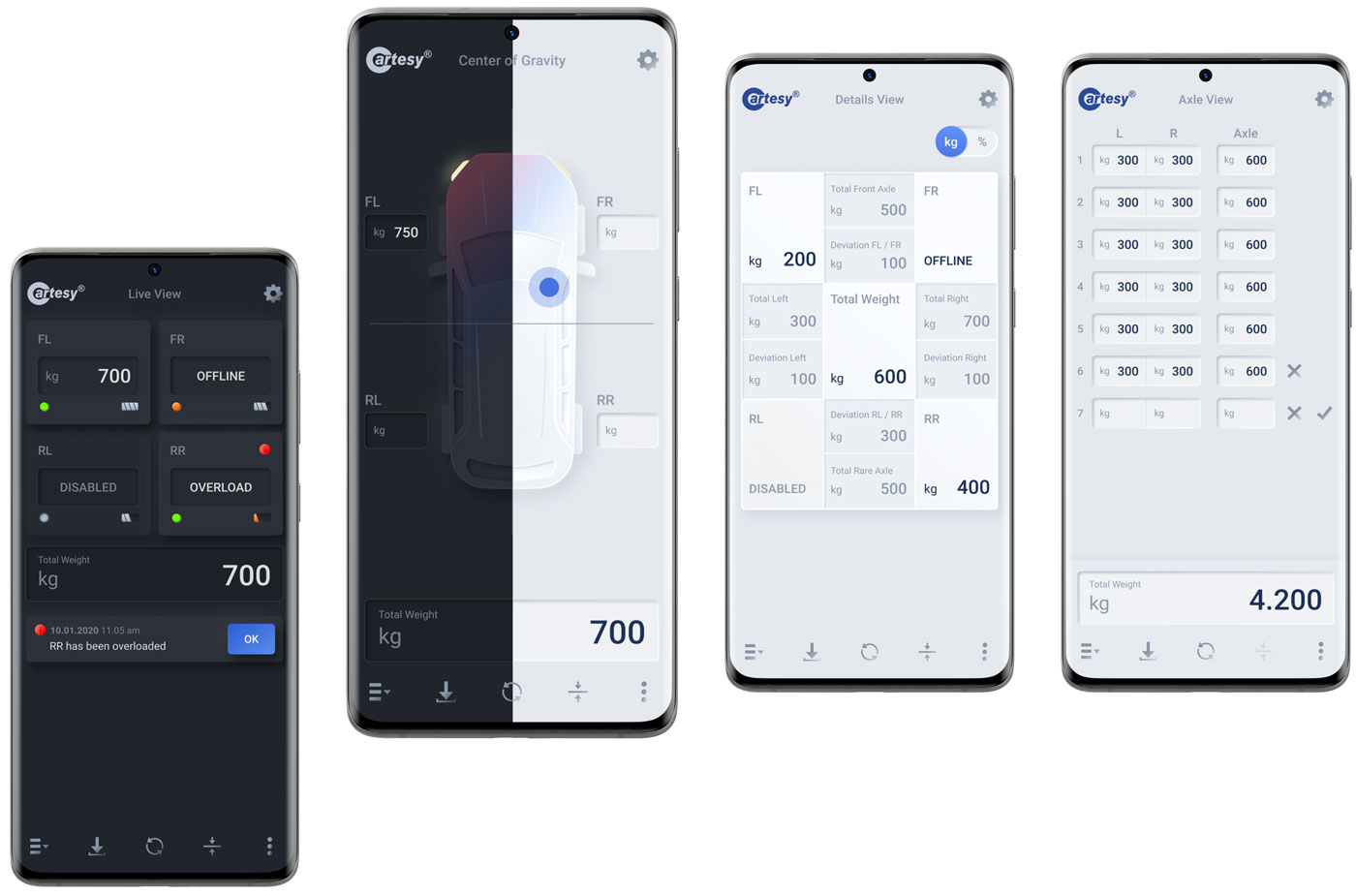 The client is a German car diagnostics company. The idea of the application is to connect remotely to the scales that determine the displacement of the axes of the car and the current center of gravity.